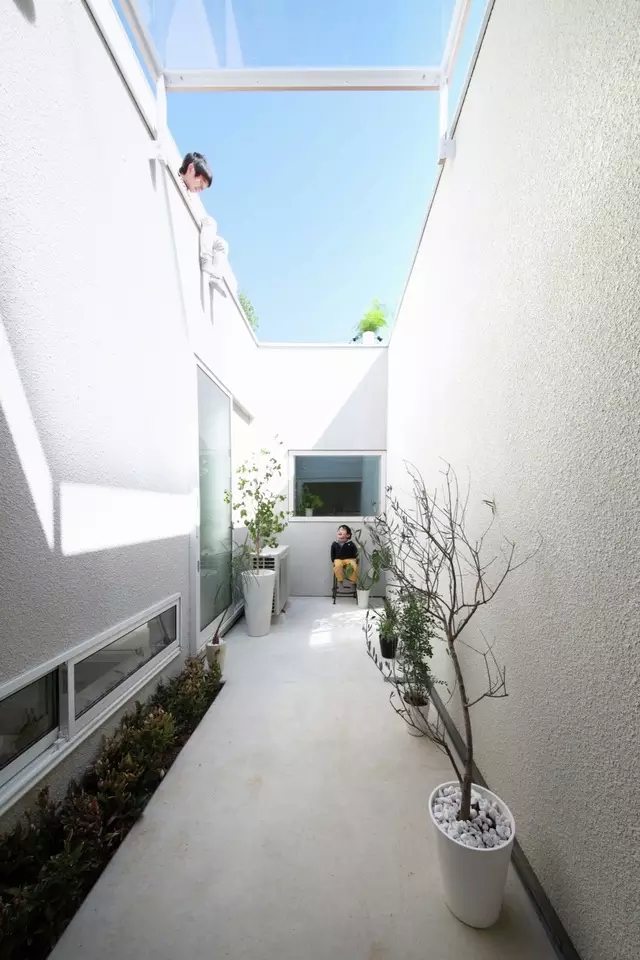 这是一块“心理”阴影面积很大的用地,用地位于日本爱知县(Aichi Prefecture)。由于用地南侧存在一座6层高的公寓,让业主的这块用地产生了较大的“心理阴影”。然而这似乎也难不住善于在极端苛刻条件下创造奇迹的日本建筑师,来自Katsutoshi Sasaki + Associates的设计师通过精确观察与测量,发现了用地“心中”的一缕阳光——靠近北侧的一条用地没有收到阴影影响。于是建筑师将这一部分设计成了建筑的阳光“收集器”