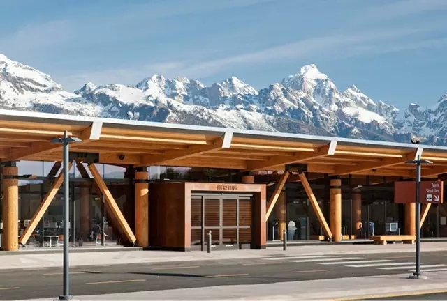 杰克逊霍尔机场是美国唯一一座坐落在国家公园的机场。在2011年机场大楼翻新改建,从原来的5521㎡扩建到10738㎡。项目涉及扩建售票大厅和停机坪,增加使用面积,改建行李领取处,建造一座全新的、先进的建筑。新建大楼在视觉方面的清晰感源于整体设计的炫丽色调,均采用不同材料的综合使用。环境责任是杰克逊文化意识的一部分,也是杰克逊霍尔机场的既定目标——最终该项目得到美国LEED绿色建筑银奖认证。