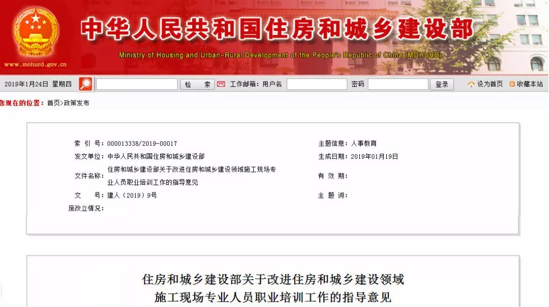 资讯|住建部发文对施工现场专业人员专业培训工作指导意见